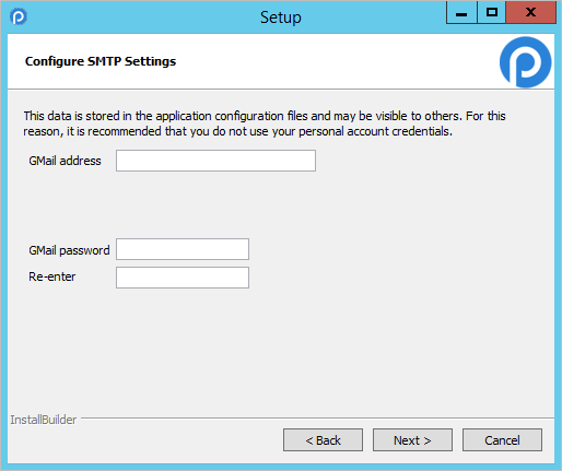 If your organization does not have its own email server, it is possible to use Gmail as an external email service. Select the "Gmail" option and fill the Gmail address and password of your gmail e-mail account.