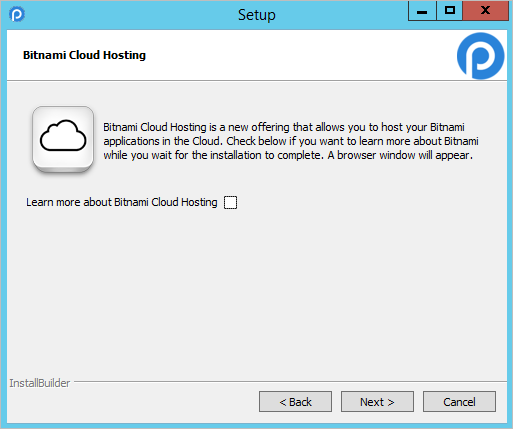In the next step, Bitnami Cloud Hosting services will be mentioned, select the checkbox if interested on the service and click on Next to continue with the installation.