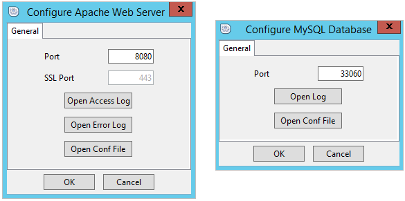 Both services can be configured if selecting the service and clicking the Configure button inside the Manage Servers tab. Also, log messages can be review in the Application log tag.
