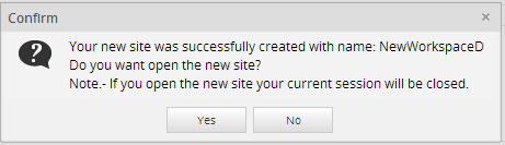 Click Yes to create the new site, or click No to close the window and return to the form.