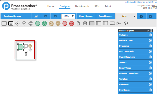 Remove the Start Event by clicking on the trash icon of its Quick Toolbar to have a blank canvas to work on.