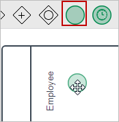 Once the pool and lanes are defined, a start event must be added in order to indicate the beginning of the process. Drag the Start Event (the empty green circle) from the shapes toolbar and drop it inside the "Employee" lane.
