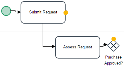 To have a better understanding of what the paths do in the gateway evaluation, label the flow lines from the gateway as “Yes” (the line to “Deliver Order” for approved requests) and “No” (the line to “Submit Request” for rejected requests). To do this, double click on the arrow of the lines to edit the labels.
