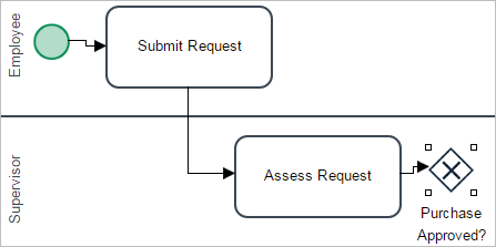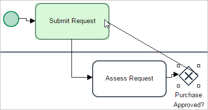 Create the second task using the Quick Toolbar of the "Submit Request" task. Place it in the "Supervisor" lane and name it "Assess Request".
