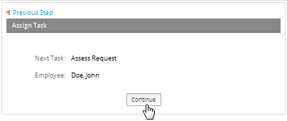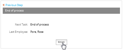 Since this is the last task of the process, the message "End of process” will be displayed, along with the name of the last employee assigned to the case.