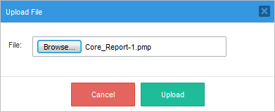 The importing option imports the configuration generated in the previous steps. This include all the users, groups, report scopes and configuration files. For this, click on Browse... and in the open dialog window navigate to your existing .pmp file, click Open and the import process will start.