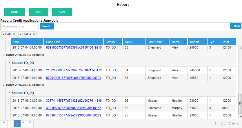 - Filtering: The Report User has the possibility of apply a filter criteria to every column.