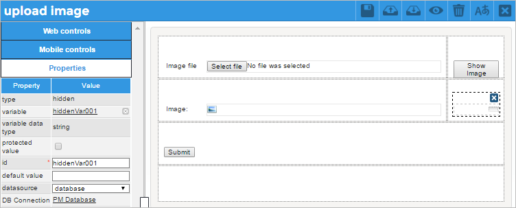 For this example add an "Image" control by dragging and dropping it from the left panel where the "Web Controls" are, onto the Dynaform canvas. The result of this action is shown in the image below.