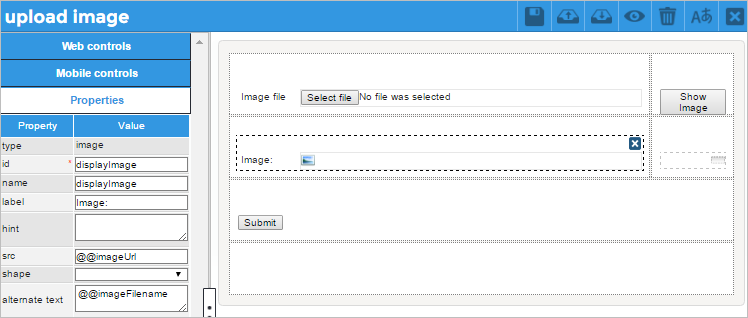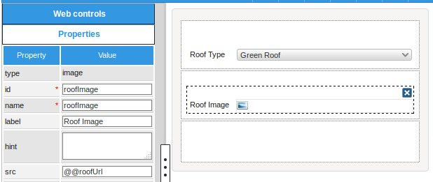 Then, in the subsequent DynaForm which has the image field to show a picture of the roof, place the @@imageUrl variable in its src property.