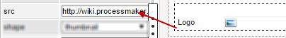Next is the "src" property sets the URL address where an specific image is located. For this example, the ProcessMaker logo will be used, its URL is the following: "/sites/default/files/full-logo.png". Run a case and the image will be displayed on the control.