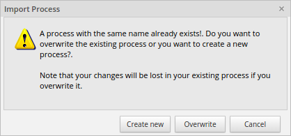 Note that if a process with the same name already exists, a message will be displayed asking the user if he/she wants to overwrite the process.