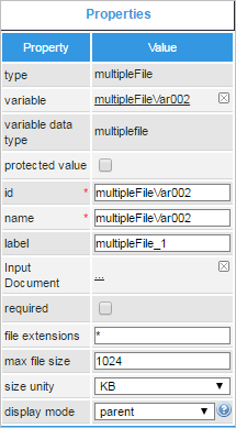 | Variable | Click on the ... option to select a multiplefile variable from the list of available variables. See this section to learn more about how to relate a variable to a control.