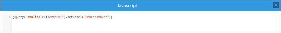 In the JavaScript editor, add code to set the label of the control (read this section for more information). For this example, add the following code: