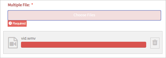 When running a case, the multiple file field will validate the size of the file before attaching it to the field. If the size of the file surpasses the size defined in this control, the progress bar of the file will stay red.