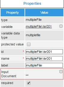 After associating the Multiple File variable with the Input Document, the Multiple File properties will take precedence over the Input Document properties.