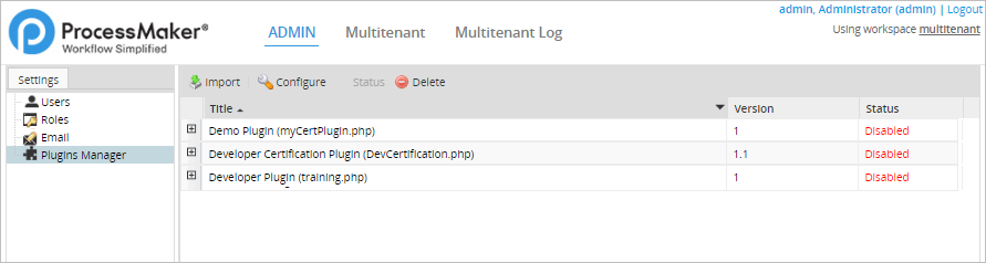 After installing the plugin, make sure that the Multitenant Workspace Management plugin is  enabled.