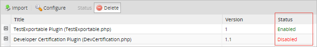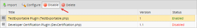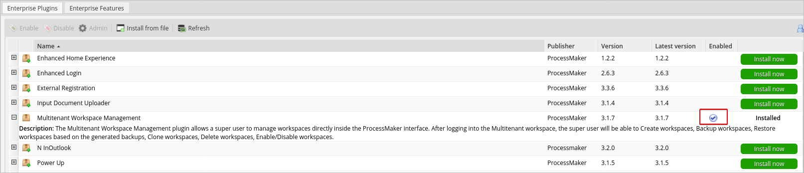 After Multitenant Workspace Management plugin is activated, the  icon is displayed in the Enabled column.