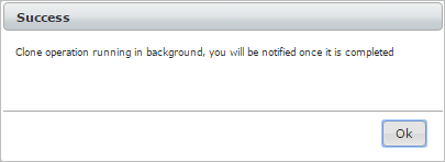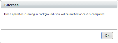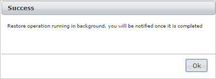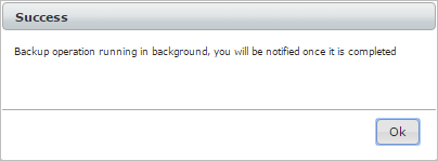 After entering the description, click on Ok to start the backup operation, or click on Cancel to close the window and return to the previous list. A message will appear indicating that the backup operation will run in the background: