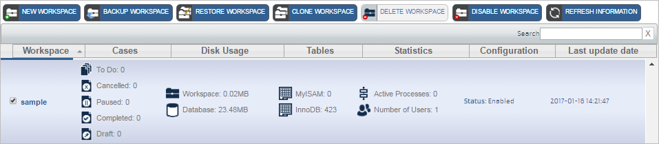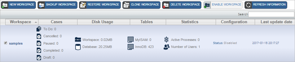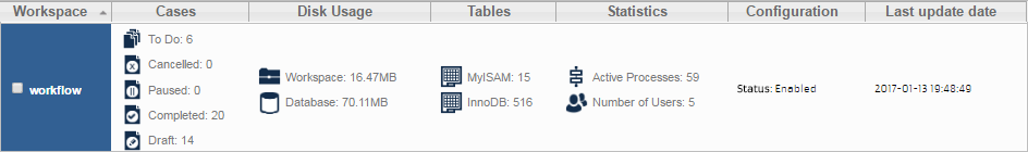 All the workspaces already present in the ProcessMaker installation will be listed.