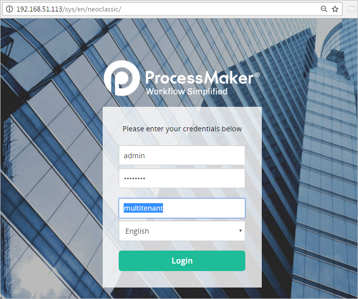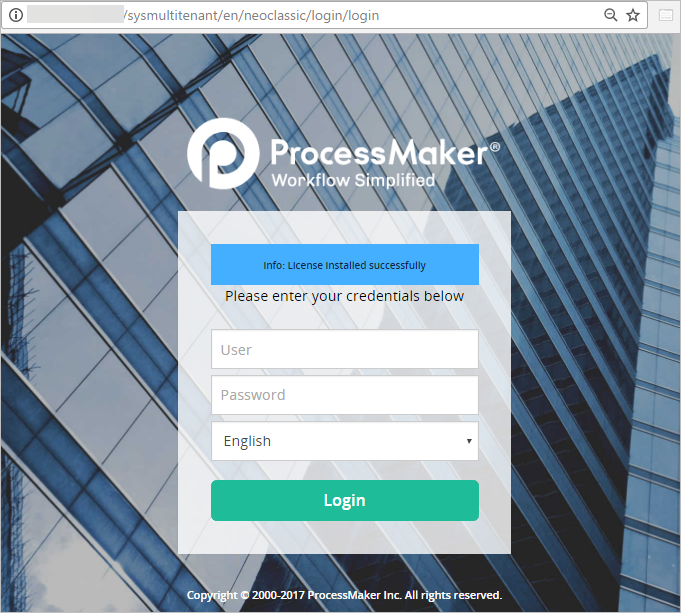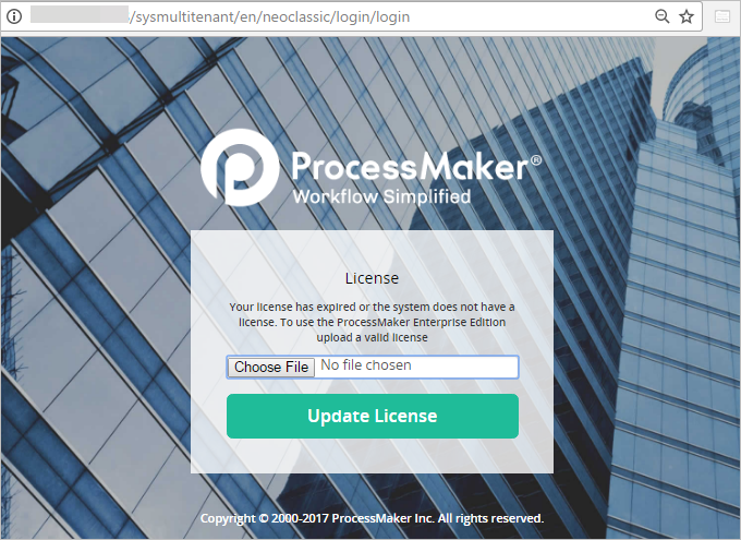 Once the license has been updated successfully, ProcessMaker will redirect the web browser to the multitenant login page: