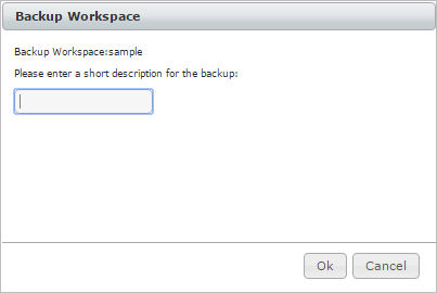 A new window will open where a short description must be entered for the workspace backup. Note that the description is limited to 20 characters long.