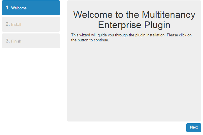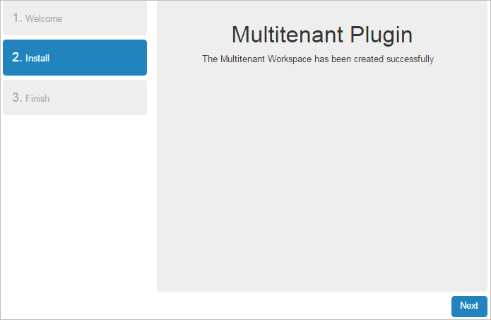 The Multitenant plugin works as a separate workspace named Multitenant. The first time after the configuration, the browser will be redirected to: