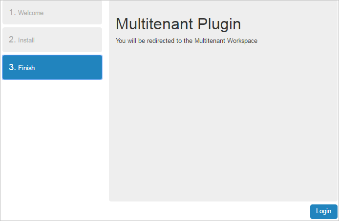 Finally, click Next and in the next window, click the Login button to be redirected to the Multitenant Manager login screen.