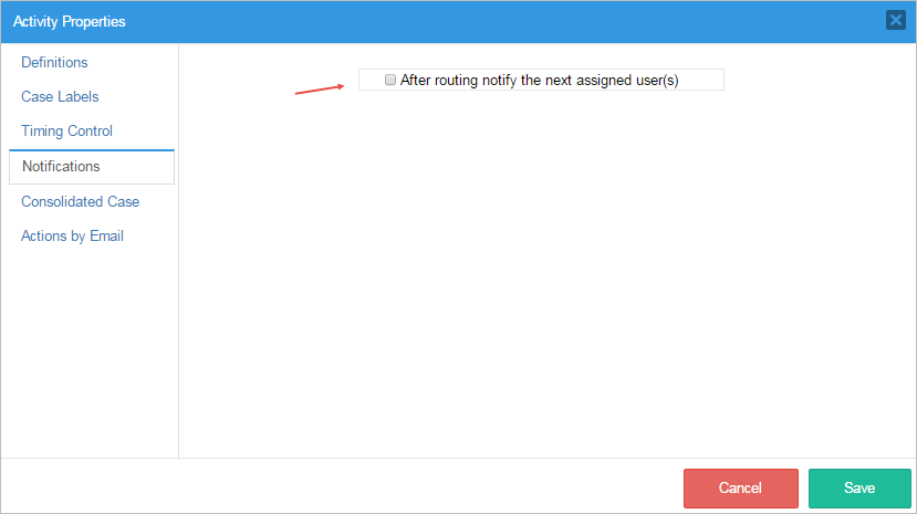 Note: Take into consideration that in cases where the next task of the process routes into a sub-process, the Case Number in the Task Notifications will be the Case Number of the master process.