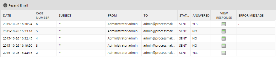 - View Response: By clicking on the icon, the email answered will open in a new window that shows the fields filled in during the process. This column is related to the Answered column. If the value in the Answered column is YES, then the window will display a message that shows the filled form or the link options.