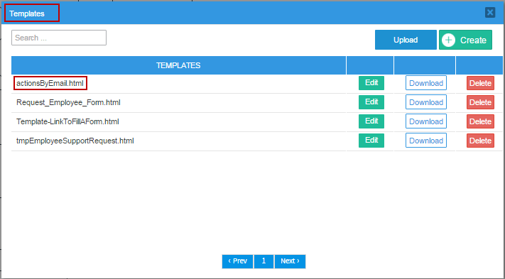 It is possible to customize the template by adding case variables and additional information related to the Dynaform, process, case, etc. To find out the actionsByEmail.html template, go to the Templates option and the template will be listed: