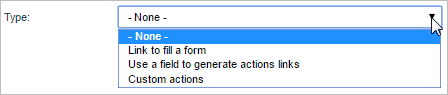 - Variable Sent in Email: This option is available only if the "Use a field to generate actions link" option is selected from the dropdown menu in the Type field. Select the variable that will be sent on the email and that will hold the value of the option selected by the user in the email. It only works for the following fields: dropdown, radiogroup and checkbox.