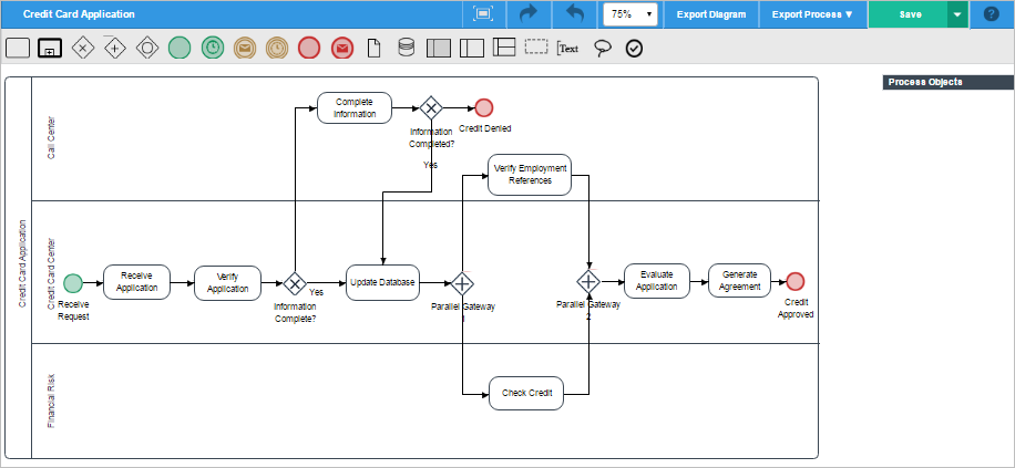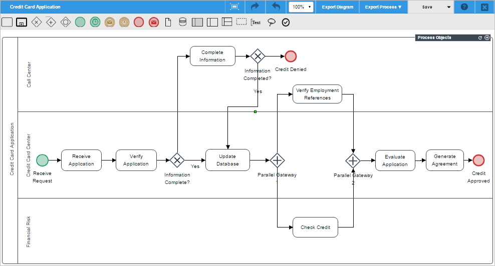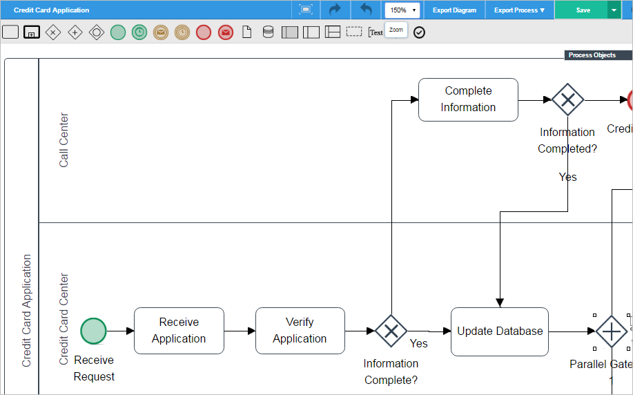 As well, the toolbar has also two options to export both the Diagram and the Process. The description of both options are in the next image: