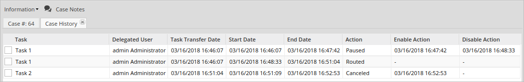 Click on the Case History option to open a new tab with the list of tasks routed or still in progress.