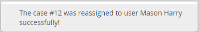 Finally, click the Reassign button to finalize the reassignment process. The Status Reassignment window will be displayed, and the case number and the person who was assigned to this case will be shown. Click on the OK button to close this window.