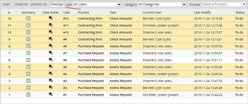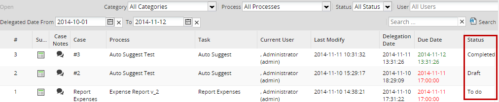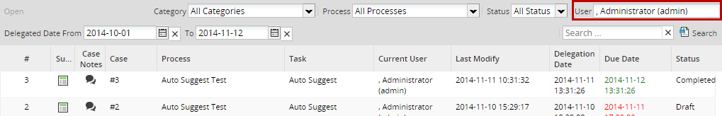 Warning: This filter does not work in customized columns. This is a known issue that will be fixed in upcoming versions of ProcessMaker.