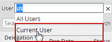 The "Current User" option shows all cases belonging to the user currently logged in.
