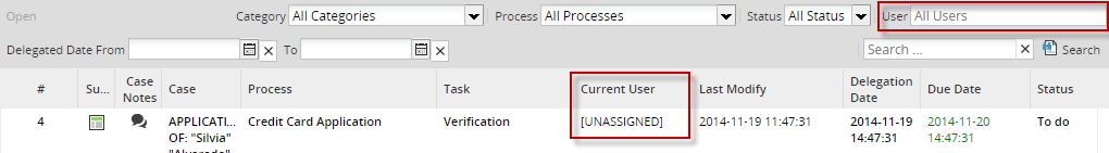 Warning: The Unread filter of the Unassigned list does not work. This is a known issue that will be fixed in upcoming ProcessMaker versions.