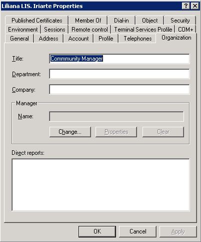 For example, inside your Active Directory server, choose a user to import. Go to the user's properties and add a job title inside Organization - Title: