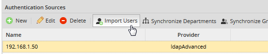 Click on New to create an authentication source. Then select the Provider, which can be the normal ldap importer or the ldapAdvanced feature.