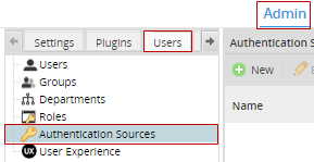 To access the Authentication Sources window, go to Admin > Users and click on Authentication Sources.