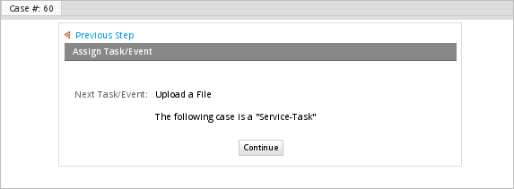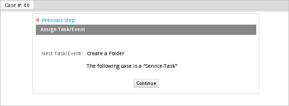 After submitting the Dynaform, the case routes to the next task, which is the second service task in the process.