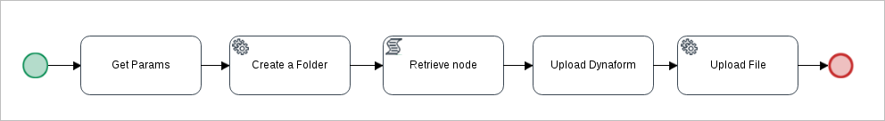 The following example creates a folder inside the Alfresco server and uploads a file from the ProcessMaker server to the created folder. This example demonstrates the following: