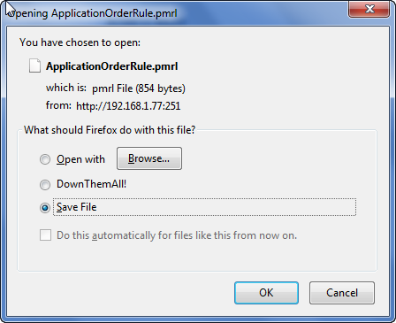 - Import: Click on this button to import a rule set file, which should have the .pmrl extension.