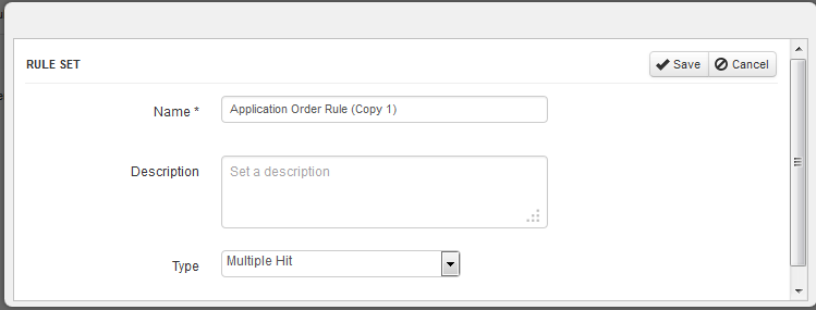 Note: It possible to change the rule set's name, description and type, but it is not possible to change its process. If needing to change the process for a rule set, a new rule set must be created.