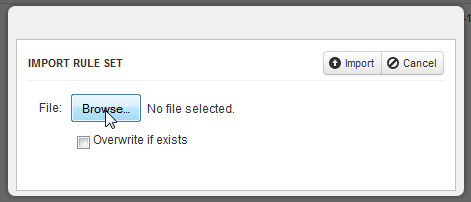 Click on the Browse button and search for the rule set file, which has an .pmrl extension. Once the file is selected, click on the Import button. The imported rule set will now be displayed in the list.