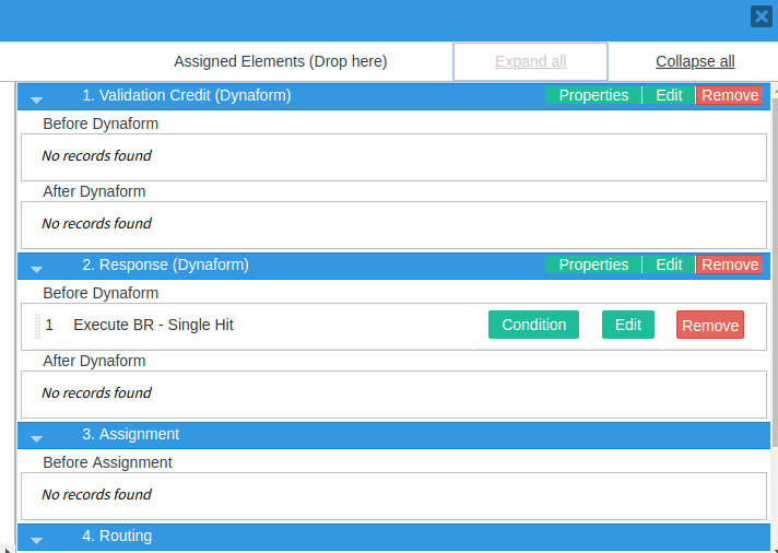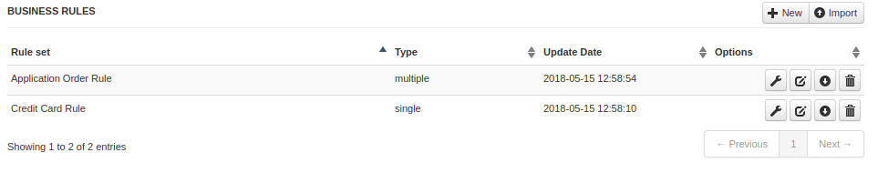 - Single Hit: The business rule engine evaluates rules until finding the first condition which evaluates as true and then returns the results and executes any action defined in the rule.