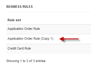 To find the name of a business rule set, go to ADMIN > Plugins > Business Rules and find the name of the rule set in the list: