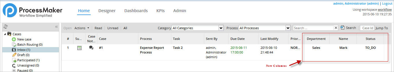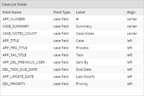 The Case List Builder is a feature designed to allow users to customize the content that is available in their case list. Using this feature, the columns in the case list can be customized to display information from Dynaform fields and case variables that are stored in report tables or PM tables. New columns can be added to the Inbox, Draft, Participated, Unassigned, Pause or Cancelled filters. Moreover, it is also possible to change the labels and alignment of the columns.