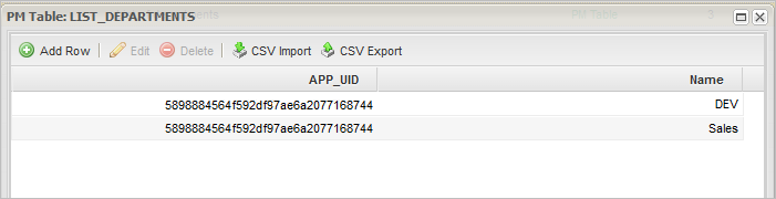 - In the PM Table, the APP_UID field must be added. The APP_UID holds the unique IDs for cases from the current workspace.
