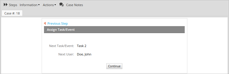 - Locate the case in the Inbox tray of the user assigned to the Task2 task and open the case.